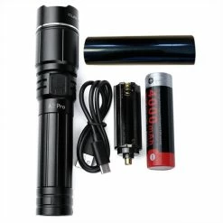 Whatโs included: Powertac Huntsman XLT flashlight, rechargeable battery, magnetic charging cable, lanyard, nylon belt holster, grip ring, pocket clip, split rings, spare O-ring, spare rubber charge port cover, and storage case